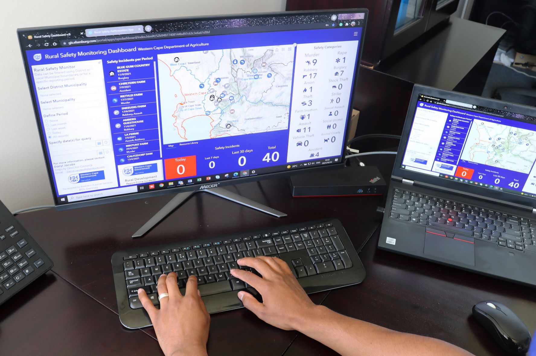 - A Rural Safety Monitoring Dashboard which spatially logs safety incidents and monitors safety incidents through the Court Watching Briefing Unit within the Department of Police Oversight and Community Safety (POCS).