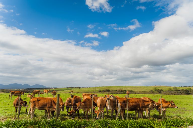 Nestled at the foot of the majestic Outeniqua mountains and close to the historical town of George, the Outeniqua Research Farm is characterised by a temperate climate with a total annual rainfall of 728 mm. The farm is approximately 300 hectares in total, with 114 ha under permanent irrigation, 50 hectares of supplemental irrigation and a further 33 ha of dryland. The registered Jersey herd of 750 is a point of pride for Outeniqua, with the 360 cows managed in a non-seasonal calving pattern forming the basis of research efforts. The fodder-flow system is based on a mosaic of pasture types including forage herbs, different grass species, legumes and mixtures.