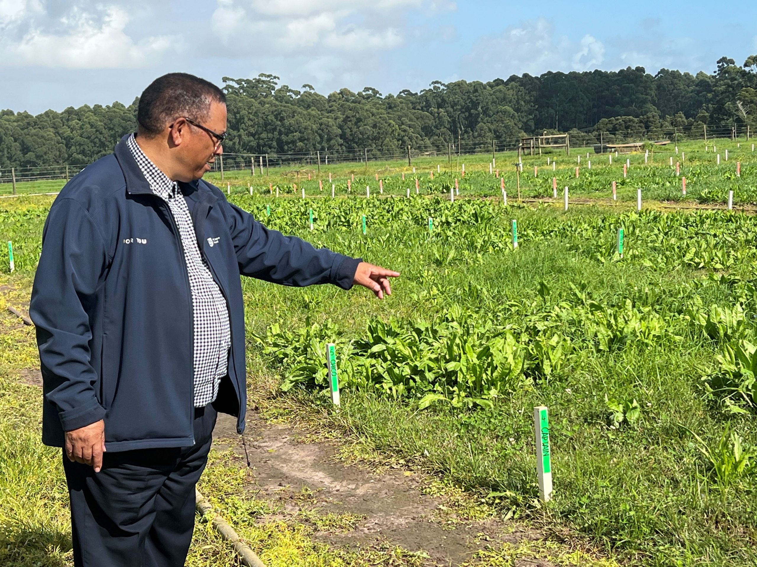 Earlier today, Western Cape Minister of Agriculture, Dr Ivan Meyer, visited the Western Cape Department of Agriculture’s (WCDoA) Outeniqua Research Farm, outside George, which is known for its research on dairy production from planted pasture. Results on pasture and the concentrate component of the dairy feed provide guidelines to producers in the Southern Cape.